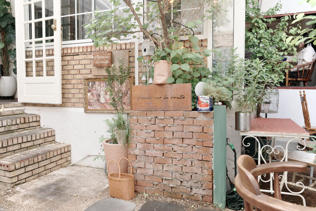 '길 위의 꽃들'이라는 프랑스어 이름의 카페 겸 레스토랑